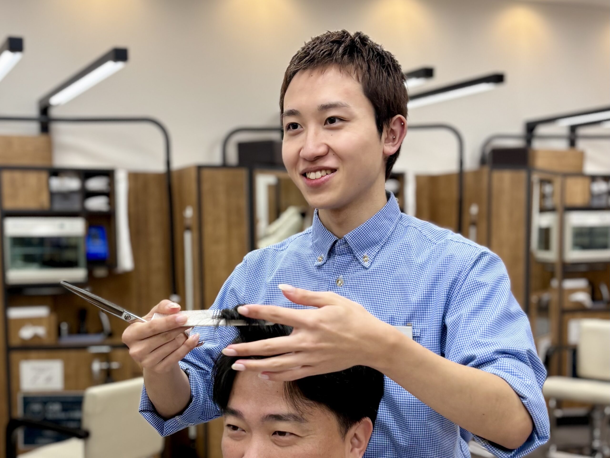 そんな経験があったので、QBHOUSEの「最短6ヶ月でスタイリストデビュー」という言葉も、最初は半信半疑だったのが本音です。ですが、入社してみると、その印象は良い意味で裏切られました。QBHOUSEの研修では、専属のトレーナーがつきっきりで見てくれます。「なぜうまくいかないのか」「次は何を意識すればいいのか」を理論的に、具体的に教えてくれます。結果だけでなく、取り組み方や考え方まで含めて見てもらえるので、納得しながら練習を積み重ねることができました。