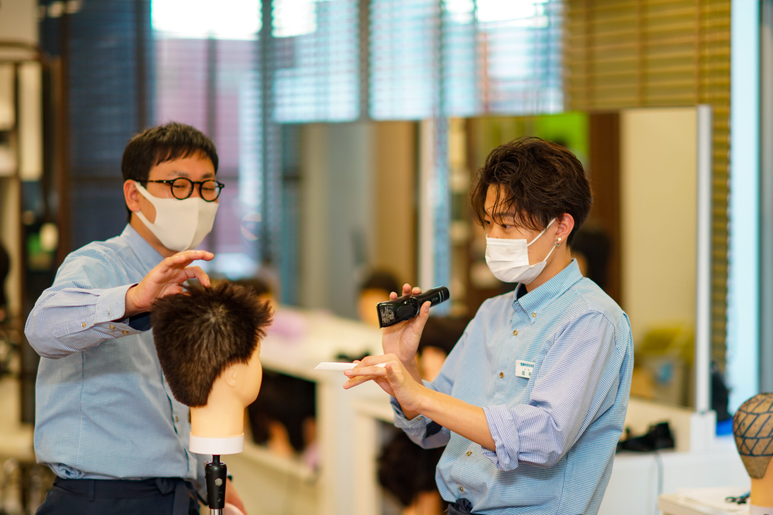 朝8時にはお店に行って掃除が終われば、開店まで練習。閉店後にも練習があって23時過ぎにお店を出る。定休日には講習参加を命じられ、休みがしっかり取れても月に1,2日くらい。そもそも休憩も少ないし、やることもいっぱいある。美容学校を卒業して就職した美容室は続きませんでしたね。次を探し始めた頃に、兄から聞いたQBハウスを見学することにしました。お客さんも10分くらいで帰れるし、シャンプーもいらない。なにより、淡々と仕事ができる入客スタイルも良いし、お店の中がきれい。思っていたイメージと全然違っていました。実際に自分の目で確かめたので、「ここなら良さそうだ!」と面接を受けることにしました。実は兄も美容師。今はQBハウスで働いています。以前は僕と同じように初めは美容室で働いていたんです。その頃の兄は毎日死んだような顔をしていて...(笑)。そんな兄がQBハウスに入ってすごく変わったんです。とにかく楽しそうだったので、すごく働きやすい環境なんろうと思っていました。